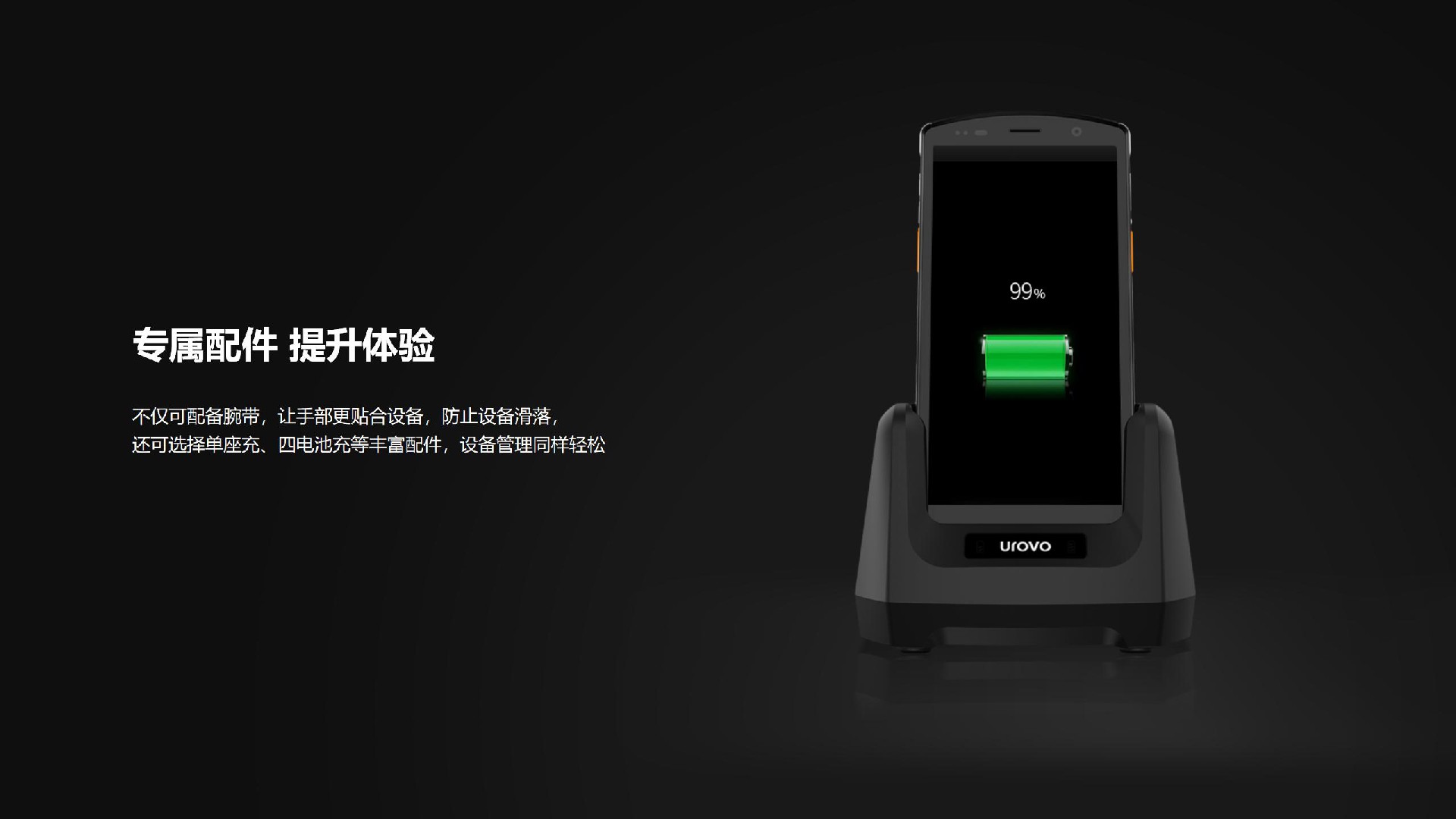 不僅可配備腕帶,讓手部更貼合設(shè)備,防止設(shè)備滑落還可選擇單座充、四電池充等豐富配件,設(shè)備管理同樣輕松